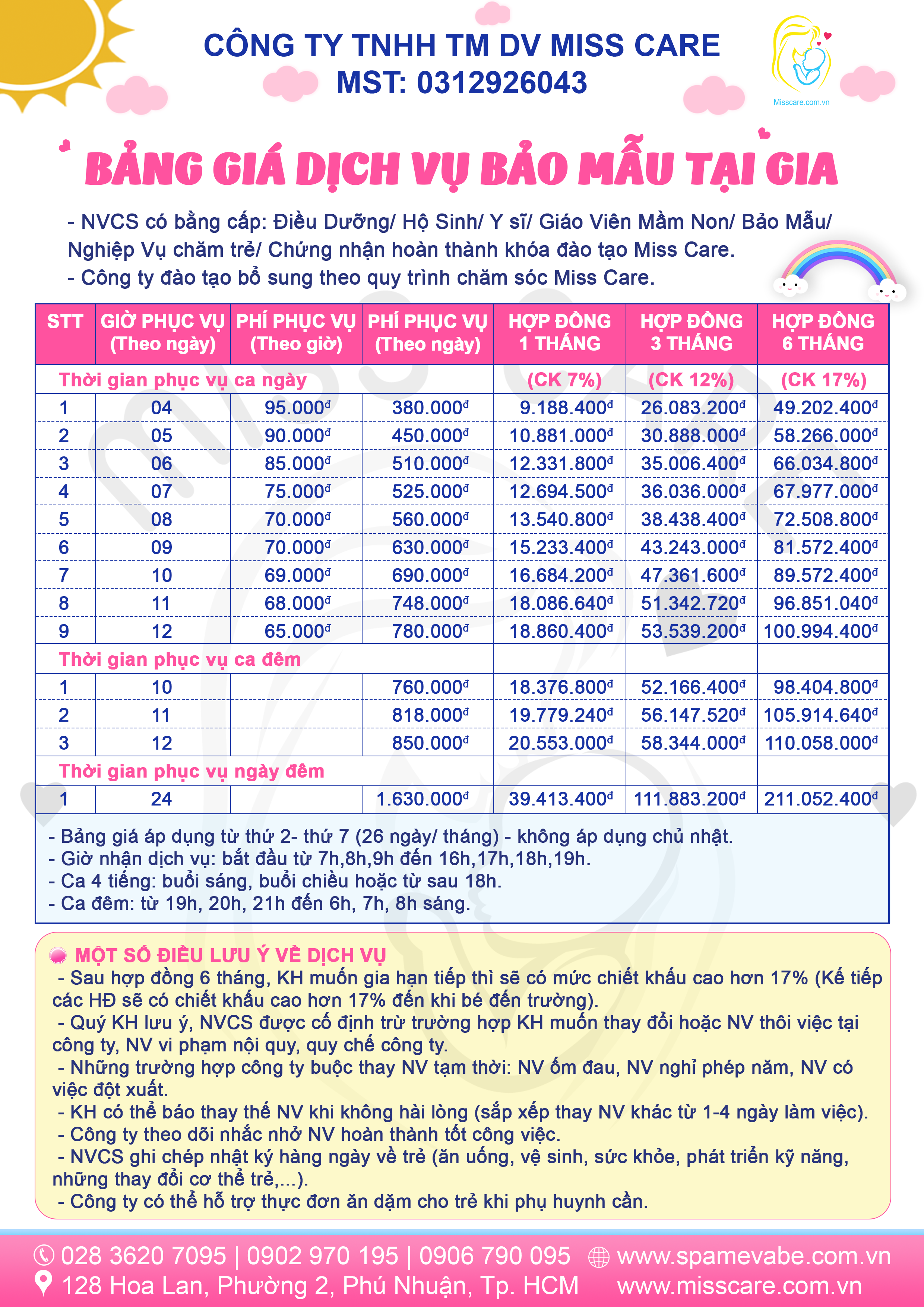 BẢNG GIÁ DỊCH VỤ BẢO MẪU TẠI GIA BẢNG GIÁ DỊCH VỤ MẸ VÀ BÉ SAU SINH TẠI GIA BẢNG GIÁ DỊCH VỤ CHĂM SÓC NGƯỜI GIÀ, NGƯỜI BỆNH TẠI NHÀ VÀ TẠI BỆNH VIỆN