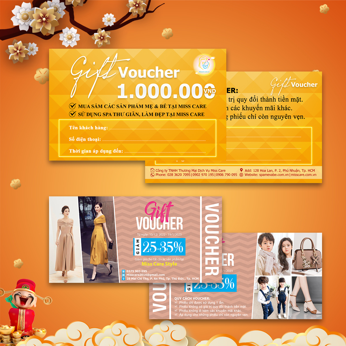 – Tặng voucher mua hàng Mẹ và Bé, thời trang Miss Care giảm 25% – 35%.